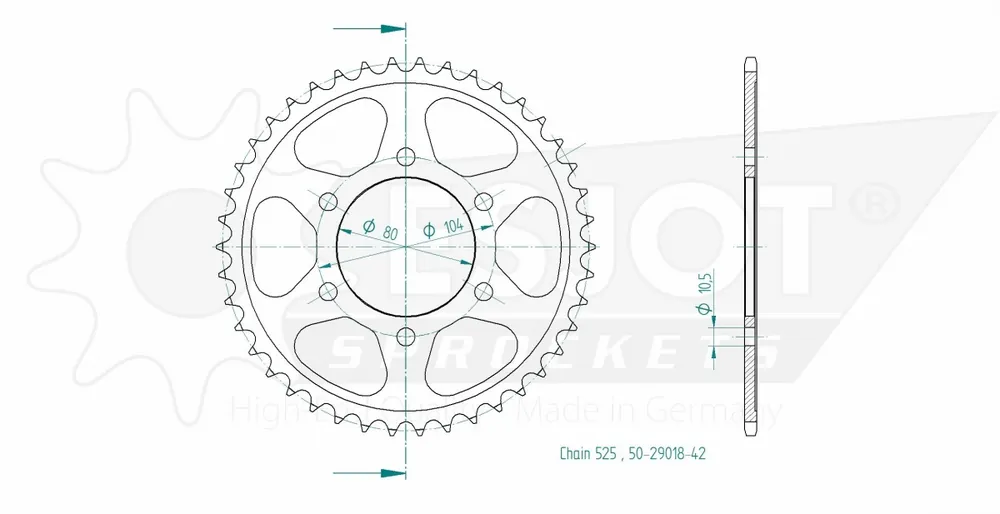 Met een tandverhouding van 42T en een kettingmaat van 525, is deze sprocket speciaal ontworpen om de prestaties van je voertuig te optimaliseren. Dankzij de nauwkeurige afwerking en de hoge kwaliteit van de materialen, garandeert de ESJOT sprocket een lange levensduur en een perfecte pasvorm.
