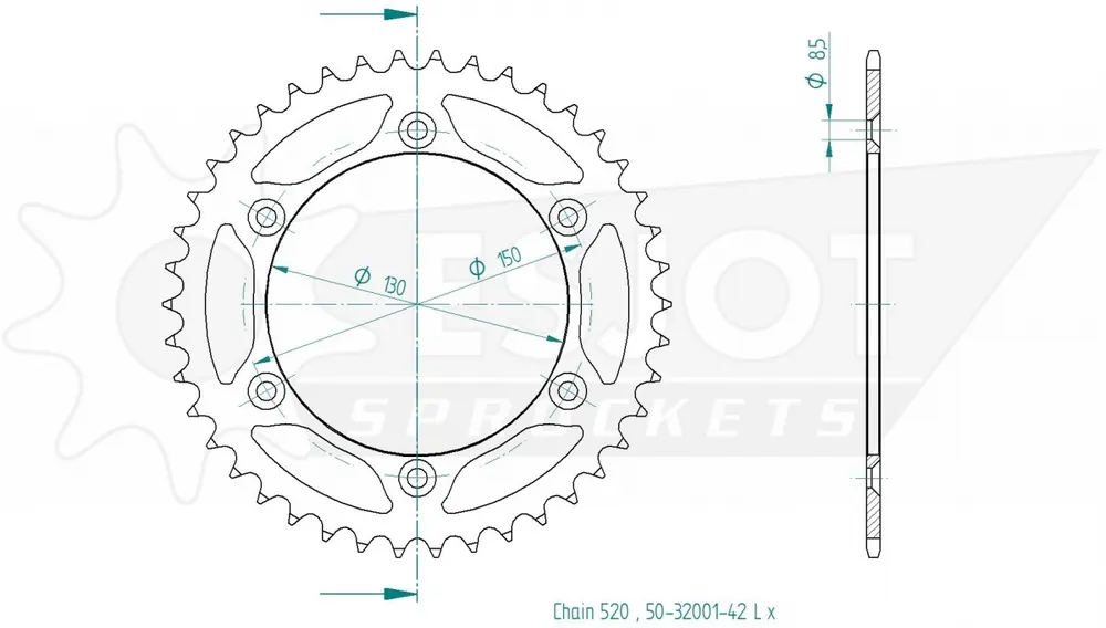 Aanbieding ESJOT – REAR STEEL LIGHT 42T, 520 – Sprockets – Lichtgewicht en duurzaam