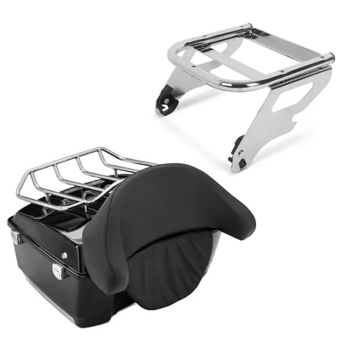 Leveringsomvang: Top Case geschikt compatibel met Harley Davidson Touring 97-13 Topkoffer Craftride Large met bagage-grill zwart + Bagagedrager Rack TP 2-Up afneembaar geschikt compatibel met Harley Davidson Touring 97-08 chroom Craftride
