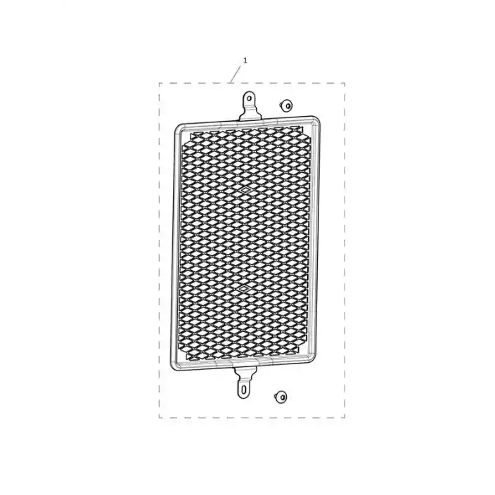Roestvrijstalen radiateurbescherming met zwarte poedercoating voor extra bescherming tegen vuil, zonder afbreuk aan de motorkoeling en met een optimale luchtstroming.