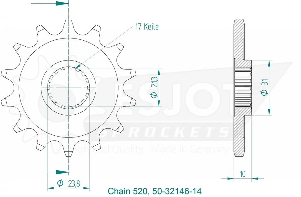 Met de ESJOT FRONT 14T, 520 haal je niet alleen een kwalitatief hoogstaand product in huis, maar ook de gemoedsrust dat je een onderdeel hebt gekozen dat goed past bij jouw Suzuki motor. Dit vergemakkelijkt niet alleen de installatie, maar garandeert ook dat je kunt genieten van een uitstekende rijervaring.