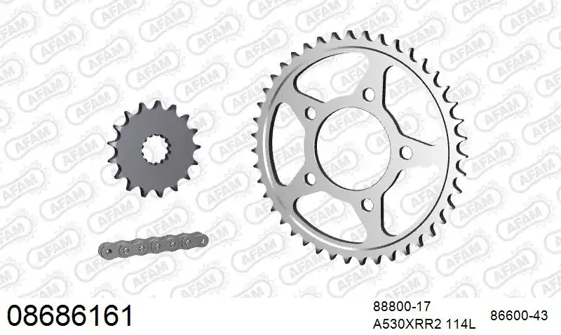 De AFAM 530XMR3 114 MRS is een universele kettingkit, wat betekent dat er geen specifieke merken of modellen aan gekoppeld zijn. Het is belangrijk om de specificaties van je motor te controleren om te zien of deze kettingkit geschikt is.