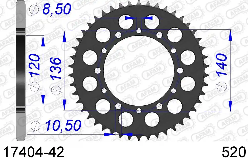 De AFAM REAR ALU 42T, 520 is een hoogwaardige sprocket die speciaal is ontworpen om de prestaties van jouw motor of scooter te optimaliseren. Deze sprocket is vervaardigd uit lichtgewicht aluminium, wat bijdraagt aan een efficiënte krachtoverdracht en een verbeterde acceleratie. Met een tandwielverhouding van 42T is deze sprocket ideaal voor rijders die op zoek zijn naar een perfecte balans tussen snelheid en controle.