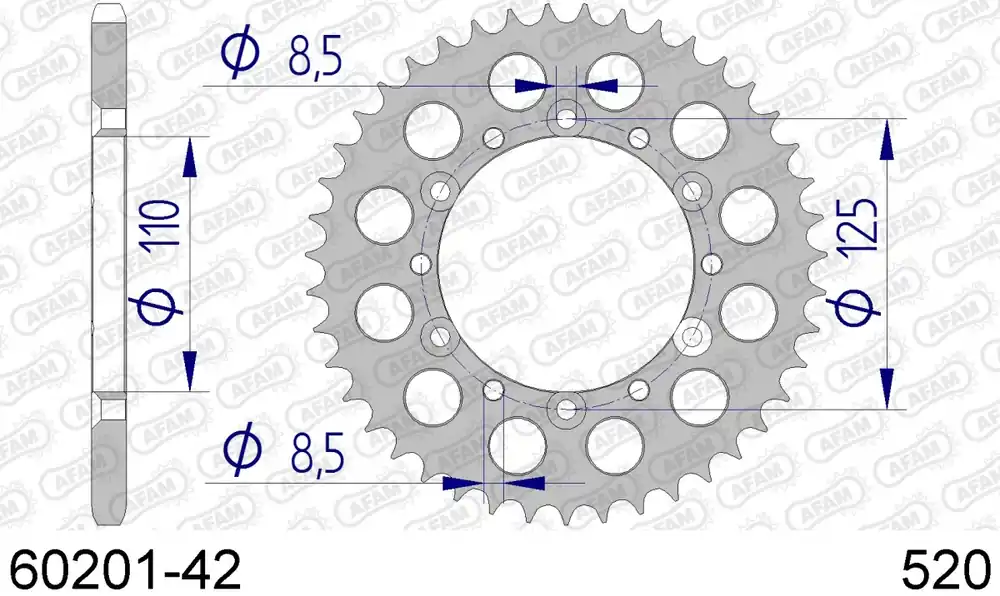 De AFAM REAR ALU 42T, 520 is een hoogwaardige sprocket die ontworpen is voor motoren en scooters. Met een tandwielconfiguratie van 42 tanden en een 520 kettingformat, biedt deze sprocket uitstekende prestaties en duurzaamheid. Dit product is perfect voor iedereen die op zoek is naar betrouwbaarheid en kwaliteit in motoronderdelen.