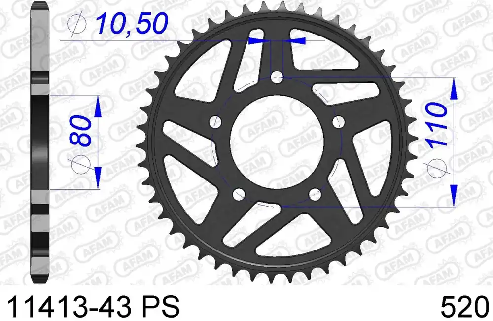 De AFAM REAR ALU 43T PS, 520 heeft een tandverhouding van 43T en is ontworpen voor een 520 ketting. Dit maakt het een ideale keuze voor degenen die op zoek zijn naar een upgrade van hun huidige sprocket en betere prestaties willen ervaren.