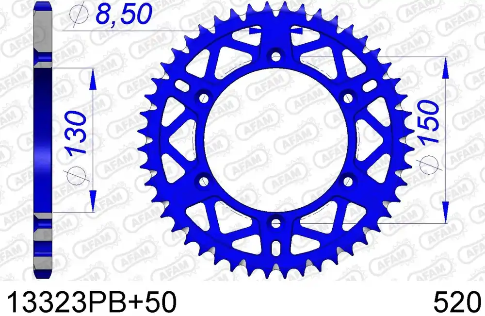 De AFAM REAR ALU 50T, 520, BLUE is een hoogwaardige achtertandwiel die speciaal is ontworpen om de prestaties van jouw motor of scooter te optimaliseren. Dit sprocket heeft een tandtelling van 50 en is gemaakt van lichtgewicht aluminium, wat niet alleen bijdraagt aan de snelheid, maar ook aan de algehele efficiëntie van je voertuig.