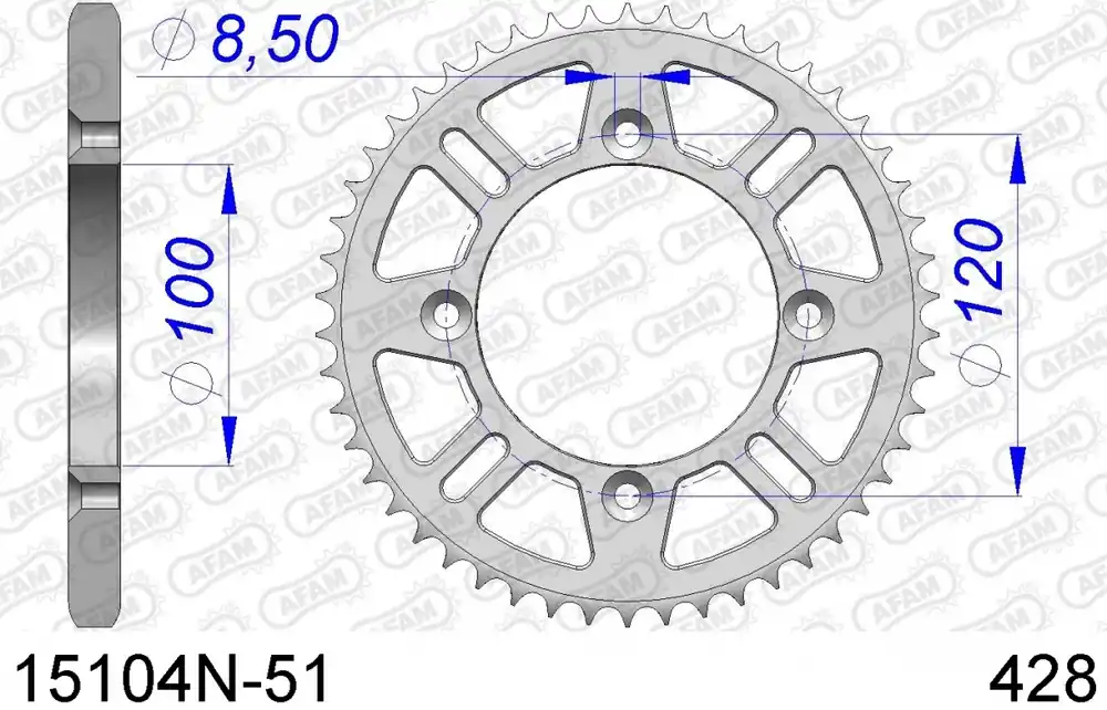 Door te kiezen voor de AFAM REAR ALU 51T, 428 profiteer je van de volgende voordelen: