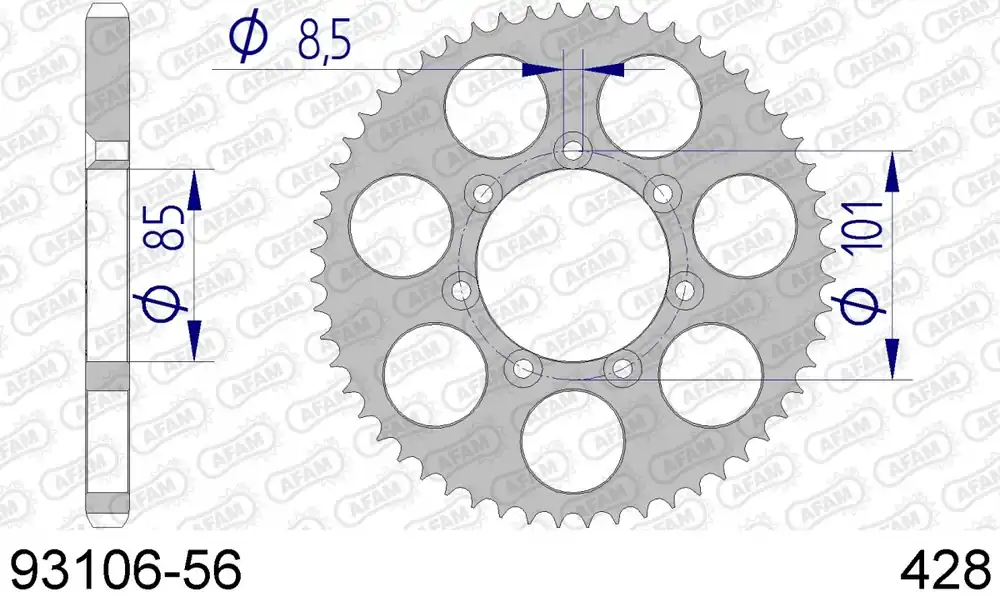 De AFAM REAR ALU 56T, 428 is een hoogwaardige sprocket die is ontworpen voor optimale prestaties en duurzaamheid. Met een unieke aluminium constructie biedt deze sprocket een uitstekende balans tussen gewicht en sterkte, wat zorgt voor een verbeterde acceleratie en handling van jouw motor of scooter.