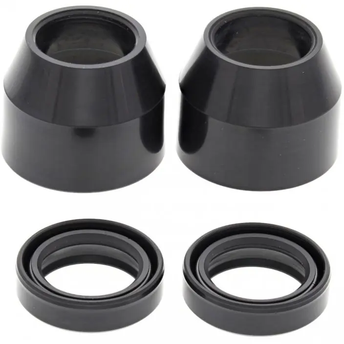 De All Balls voorvorkkeerringen en stofkappen worden vervaardigd volgens specificaties en toleranties van jouw motormerk om kwaliteit en duurzaamheid te waarborgen. De stofkappen zijn voorzien van stevige externe veren zodat de binnenste voorvorkpoot zo veel mogelijk vrij blijft van stof en vuil. Wordt geleverd per set van twee voorvorkkeerringen en twee stofkappen.