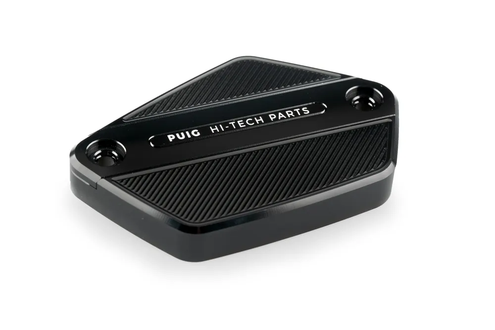 Puig remvloeistofreservoir deksel voor de voorrem vervaardigd uit massief aluminium en leverbaar in diverse kleuren.