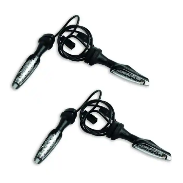Kit bestaande uit vier led-richtingaanwijzers met hoge helderheid. Ze zijn licht en compact en combineren de uitstekende technische kenmerken met een laag profiel dat het ontwerp van de achterkant en het assertieve uiterlijk van de motorfiets verbetert.