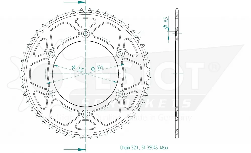 De ESJOT REAR ALU 48T, 520 heeft geen specifieke compatibiliteit met bepaalde merken of modellen, maar is een universele sprocket die kan passen bij verschillende voertuigen.