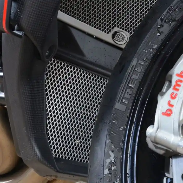 Bescherm de oliekoeler tegen opspattende stenen en rommel op het wegdek. Eenvoudig te monteren. De R&G oliekoelerbeschermer wordt ook wel R&G Oil Cooler Guard genoemd.