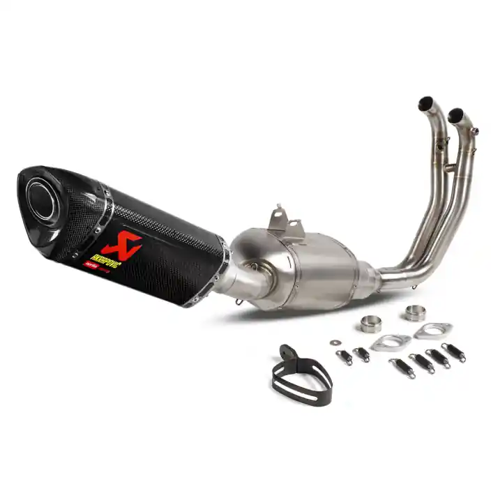 De Akrapovic door Aprilia gehomologeerde complete uitlaat is ontworpen om het voertuig een perfecte racestemming te geven. Door het geselecteerde materiaal en de constructie produceert het systeem een agressief sportief geluid. De uitlaat heeft een ECE EU5 goedkeuring. Het kopen van dit originele accessoire maakt de garantie van het voertuig niet ongeldig.