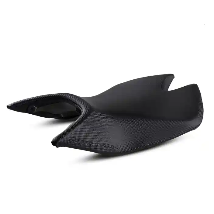 Zadel opgevuld met gel, gemaakt van carbon look skay voor racen. Ontwikkeld in samenwerking met de stijlafdeling van Aprilia. Maximale grip voor de rijder. Voor de gebruiker die maximaal comfort en stijl verlangt.