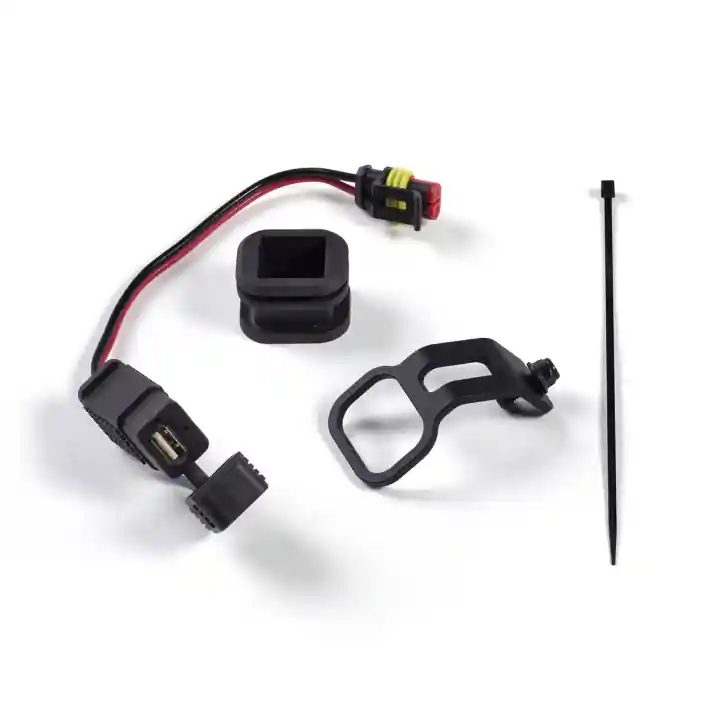 USB-aansluiting voor het opladen van smartphones, uitgerust met speciale ondersteuning voor installatie op het voertuig. Het staat geen gegevensoverdracht met de elektronische apparaten van het voertuig toe.