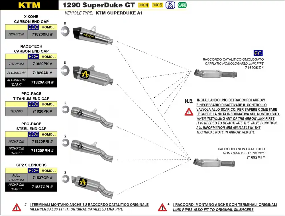 De ARROW RACE-TECH ALUMINIUM DARK, CARBON END CAP is compatibel met verschillende modellen van de KTM 1290 Superduke, waaronder de GT en R series. Dit betekent dat je met deze eindkap eenvoudig jouw specifieke model kunt upgraden zonder zorgen over montageproblemen.