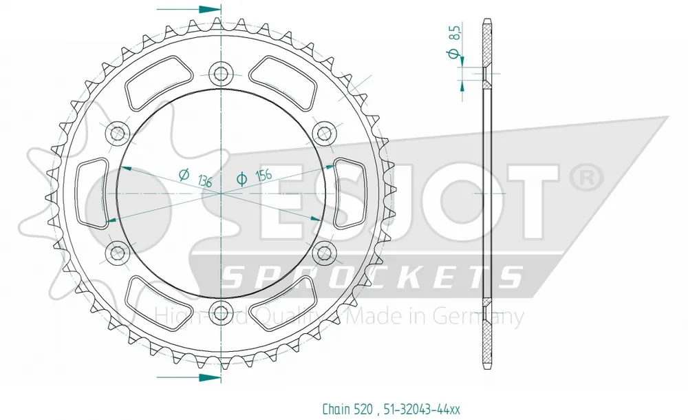 De ESJOT REAR ALU 44T, 520 sprocket is een hoogwaardige achtertandwiel, ontworpen om optimale prestaties te leveren voor jouw motor of scooter. Dit onderdeel is vervaardigd uit aluminium, wat zorgt voor een unieke combinatie van lichtgewicht en duurzaamheid. Dankzij het intelligente ontwerp is het een uitstekende keuze voor zowel dagelijkse ritten als voor meer uitdagende ritten.