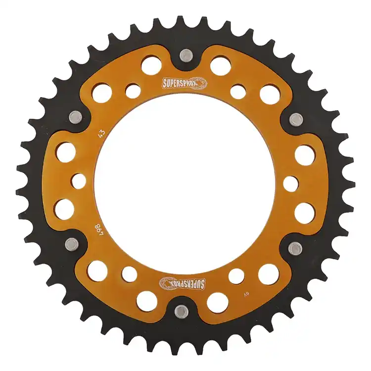 De SUPERSPROX REAR STEALTH 43T in een stijlvolle gouden kleur is de perfecte sprocket voor motor- en scooterliefhebbers die op zoek zijn naar kwaliteit en prestaties. Met een vertanding van 43T en een maat van 525 biedt deze sprocket uitstekende functionaliteit en betrouwbaarheid.