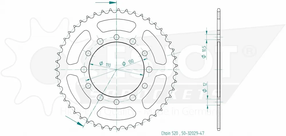 Deze sprocket is vervaardigd uit stevig staal, wat zorgt voor een langere levensduur en betere prestaties onder verschillende rijomstandigheden. Het 520-kettingformaat maakt het ook eenvoudig te installeren op motoren die dit formaat ondersteunen.