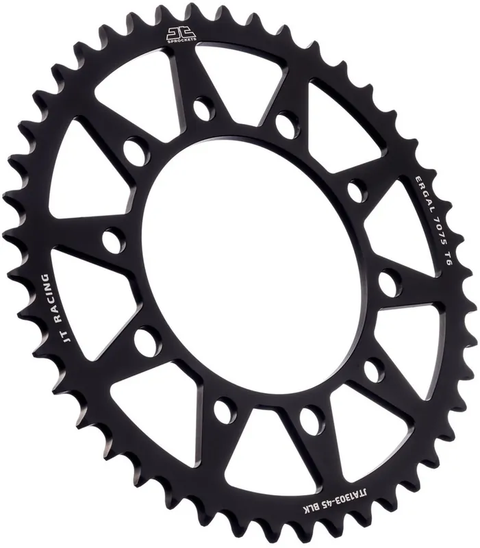 De JT SPROCKETS REAR RACELITE ALU 45T BLACK, 520 is een hoogwaardige achtertandwiel die is ontworpen voor motorrijders die op zoek zijn naar een betrouwbare en duurzame oplossing. Dit sprocket heeft een lichtgewicht aluminium constructie, wat zorgt voor een verbeterde acceleratie en prestaties. De zwarte afwerking geeft het een strakke uitstraling die perfect past bij verschillende motorstijlen.