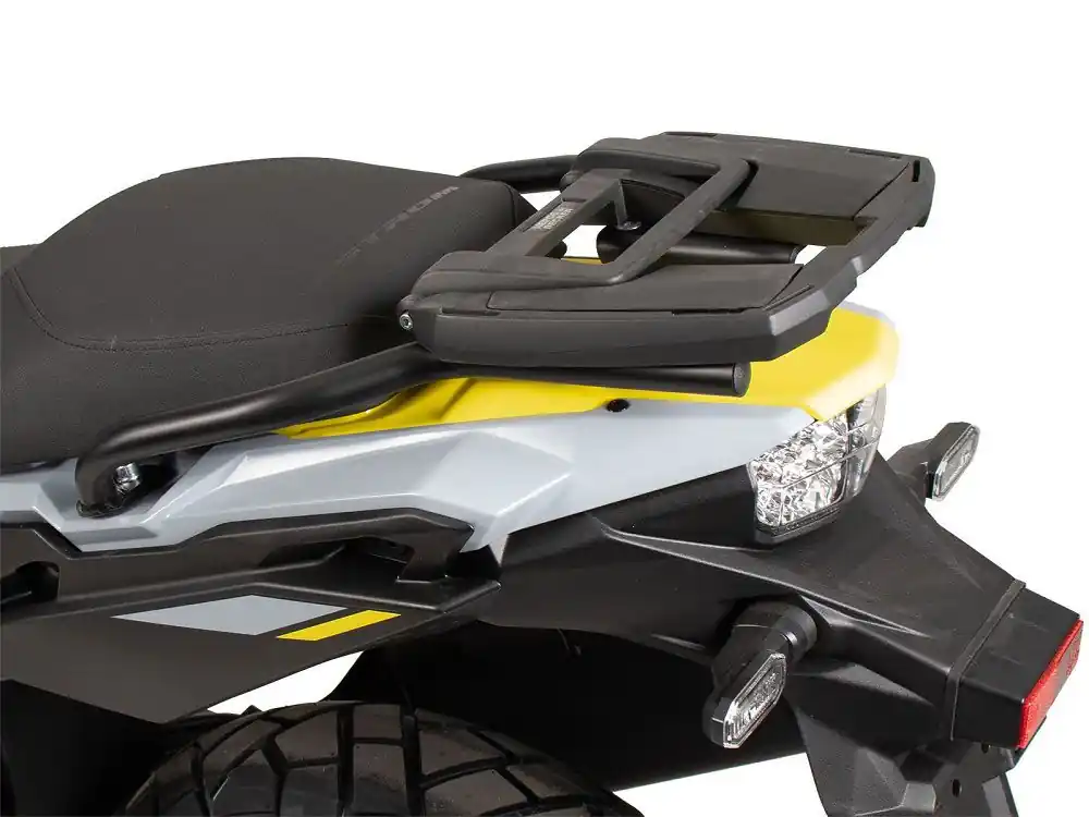 Zeer stabiele drager voor topkoffer van Hepco & Becker met klapbare beugel, vervaardigd uit hoogwaardig aluminium in de kleur zwart.