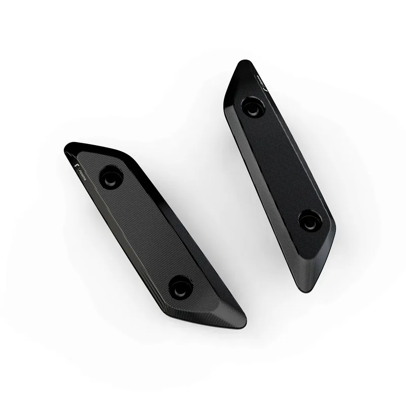 Indien de originele spiegels vervangen worden door spiegels die op het stuur gemonteerd worden, kun je met deze mooie afdekplaatjes de openingen in de stroomlijn mooi afwerken.