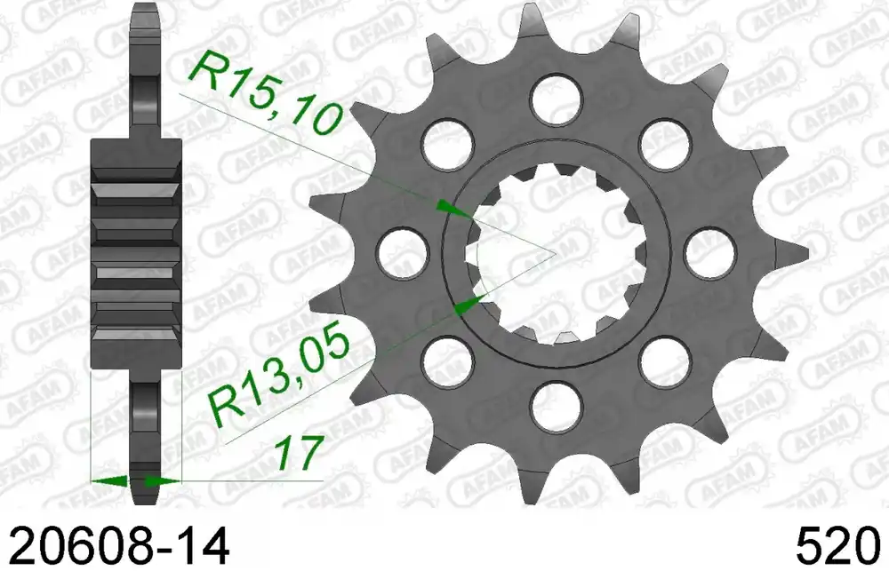 De AFAM FRONT 14T, 520 sprocket heeft geen specifieke merk- of modelcompatibiliteit, waardoor hij geschikt is voor een breed scala aan motoren en scooters.
