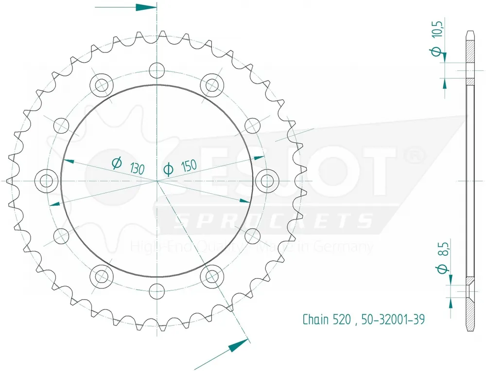 Controleer de specificaties van je motor en vergelijk deze met de compatibiliteit van de ESJOT REAR STEEL 39T, 520. Deze sprocket is ontworpen voor een breed scala aan modellen.