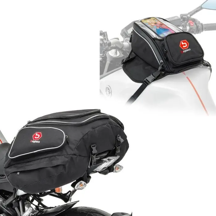 Leveringsomvang: Motorfiets tanktas MR4 met magneet en riembevestiging 9Ltr + Motorfiets Buddyseat tas X50 achterste zadeltas 50Ltr in