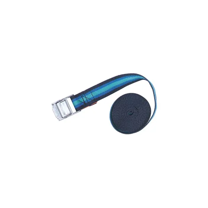 Een universeel verstelbare bagageriem. Handig voor bijvoorbeeld het vastzetten van een bagagerol achterop de motor.