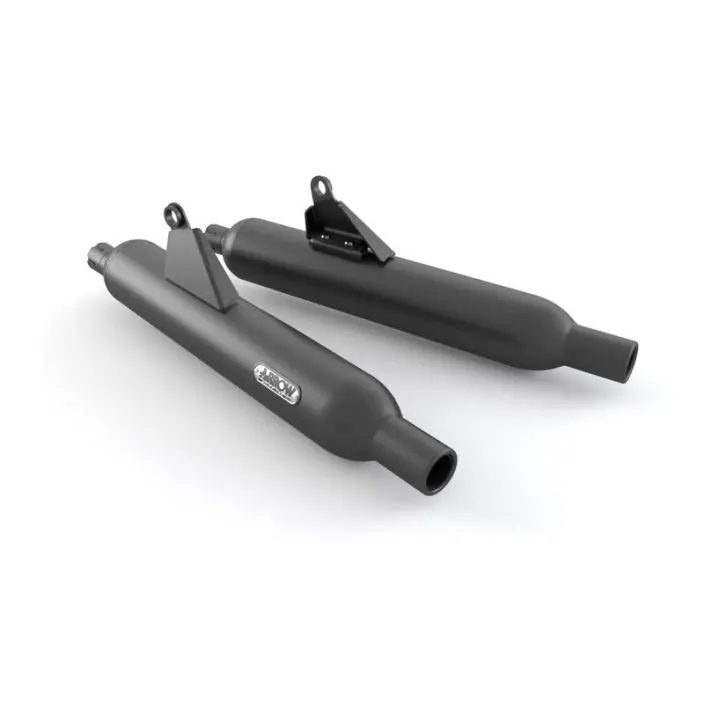 Triumph T100 Arrow Black Peashooter slip-on uitlaat – A9601759De Triumph T100 Arrow Black Pea Shooter Slip On-uitlaat MPN A9601759 is een paar roestvrijstalen slip-on-uitlaten in peashooter-stijl afgewerkt met een zwarte keramische coating. Vervaardigd door uitlatenspecialist Arrow, zijn ze ontworpen om korter en lichter te zijn dan de uitlaat van de originele uitrusting, en ontworpen om een grotere uitlaatpijpdiameter te bieden. Combineer met de Triumph T100 Black Exhaust Header om de gestroomlijnde zwarte stealth-look compleet te maken.