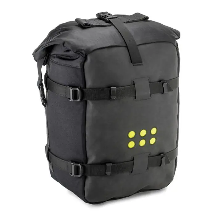 De tas is van robuust Hypalon in combinatie met 1000D Cordura inzetten en aluminium en Acetal buckles. Praktisch onverwoestbaar en daarom ook de bekende 10 jaars garantie van Kriega op productiefouten. Tas kan als stand alone gemonteerd worden op buddyseat of bagagerek (met behulp van OS-Rackloops of Drypack rackloops). Fluorescerende details zijn aanwezig voor extra zichtbaarheid en onderscheiding. Optioneel te verkrijgen schouderriem om de tas als slingbag te kunnen dragen.