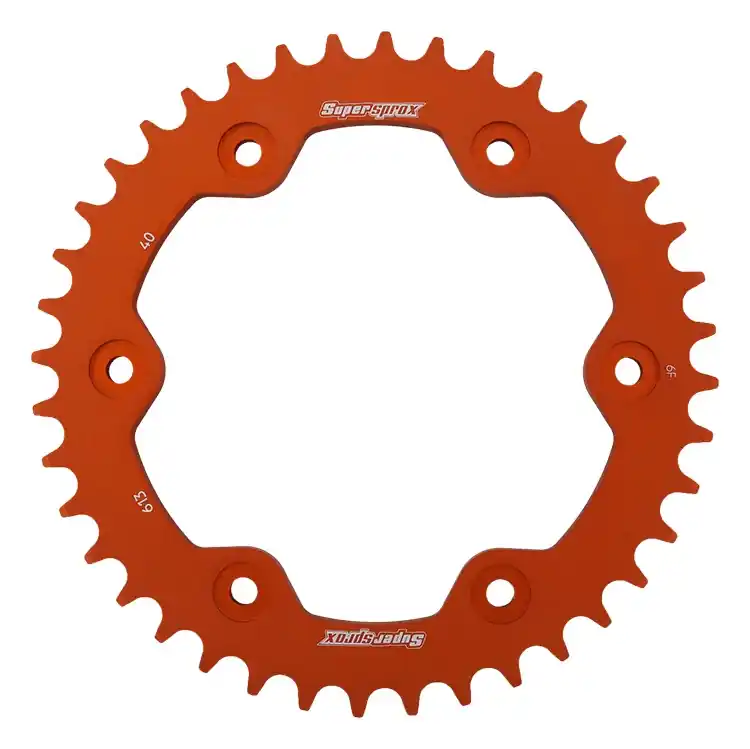 De SUPERSPROX REAR ALU 40T, ORANGE, 525 sprocket is ontworpen voor motor- en scooterliefhebbers die op zoek zijn naar een betrouwbare en lichte oplossing voor hun voertuig. Met een tandwielverhouding van 40 tanden biedt deze sprocket uitstekende prestaties en acceleratie.
