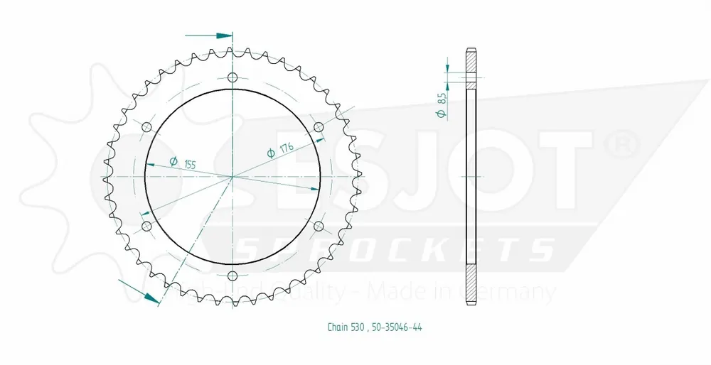 Hoewel er geen specifieke merken of modellen zijn vermeld, is de ESJOT REAR STEEL 44T, 530 ontworpen om te passen bij een breed scala aan motoren en scooters. Het is altijd raadzaam om de specificaties van je voertuig te controleren voor de beste compatibiliteit.