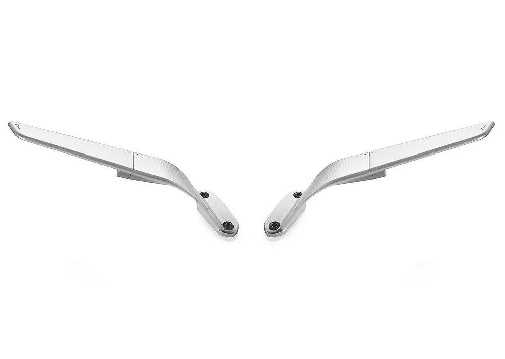 De spiegelglashouder is kantelbaar, waardoor bij hoge snelheden extra down force gecreëerd kan worden en bij lagere snelheden een stijlvolle spiegel.