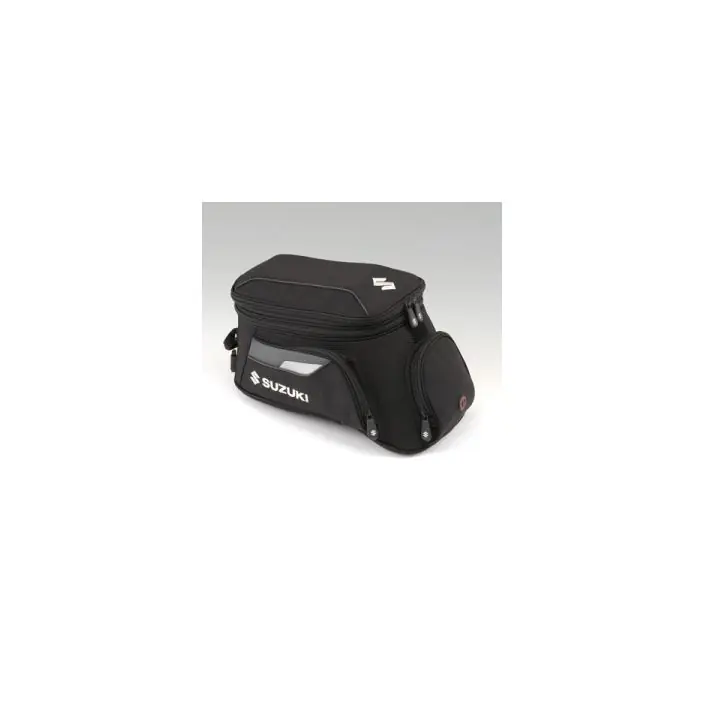 Tanktas vervaardigd van hoogwaardig nylon en afgewerkt met een refelecterende striping en Suzuki logo. De inhoud van de tanktas 11L en middels een rits uit te breiden naar 15L. De tanktas wordt geleverd exclusief adapter ring (art. nr. 990D0-04105-000) en inclusief regenhoes en riem zodat u hem eenvoudig kunt dragen.