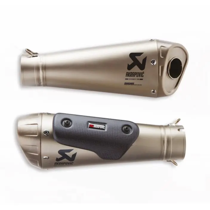 Het onmiskenbare Ducati-ontwerp wordt gecombineerd met het bekwame vakmanschap van Akrapovič om het meeste uit een slip-on-systeem te halen. De volledig titanium uitlaat, ontwikkeld in samenwerking met Ducati Corse, versterkt het gebrul van de Panigale V4. Een belangrijke investering op het gebied van koppel en ontketend vermogen, het staat ook garant voor een gewichtsbesparing ten opzichte van de standaard uitlaat. Uitgerust met een speciale motormapping en specifieke DTC-, DPL- en DWC-kalibraties om aan de specifieke behoeften van circuitgebruik te voldoen en maximale prestaties te garanderen.