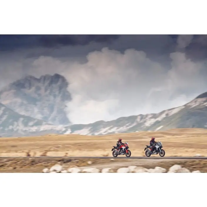 Een pakket exclusief gewijd aan de Multistrada V4dat speciaal is ontworpen om de functionaliteit en bruikbaarheid van de motor verder te verbeteren. Het Vehicle Hold Control-systeem helpt de berijder bij het wegrijden op een helling door actief het achterwiel af te remmen en het voertuig stil te houden. Het rijcomfort wordt gemaximaliseerd door de cruise control-functie en door het Ducati Quick Shift-systeem, waarmee de versnellingen op en neer kunnen worden geschakeld zonder de koppeling te gebruiken en zonder het gaspedaal los te laten, voor snellere acceleratie. Het perfecte accessoirepakket om het volledige potentieel van de nieuwe Multistrada V4 te benutten.