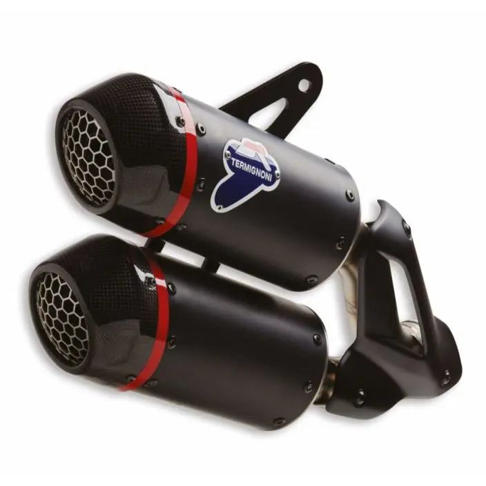 Racestijl, stedelijk karakter. De lichtheid van de koolstofvezel en het ontwerp van dit accessoire brengen het sportieve karakter van de monster naar voren en versterken de jonge frisse look, typisch voor de nakedbike. Vervaardigd in samenwerking met Termignoni, is het vanaf het eerste gezicht ontworpen voor echte opwinding.