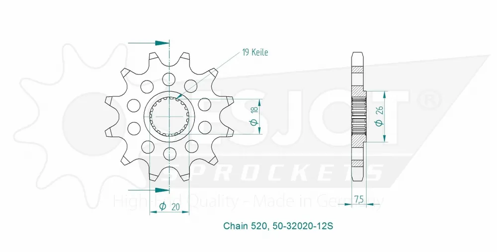 ESJOT – FRONT 12T, LIGHT, 520 – Sprockets – Compatibel met Honda CR 125 R Snelle Levering