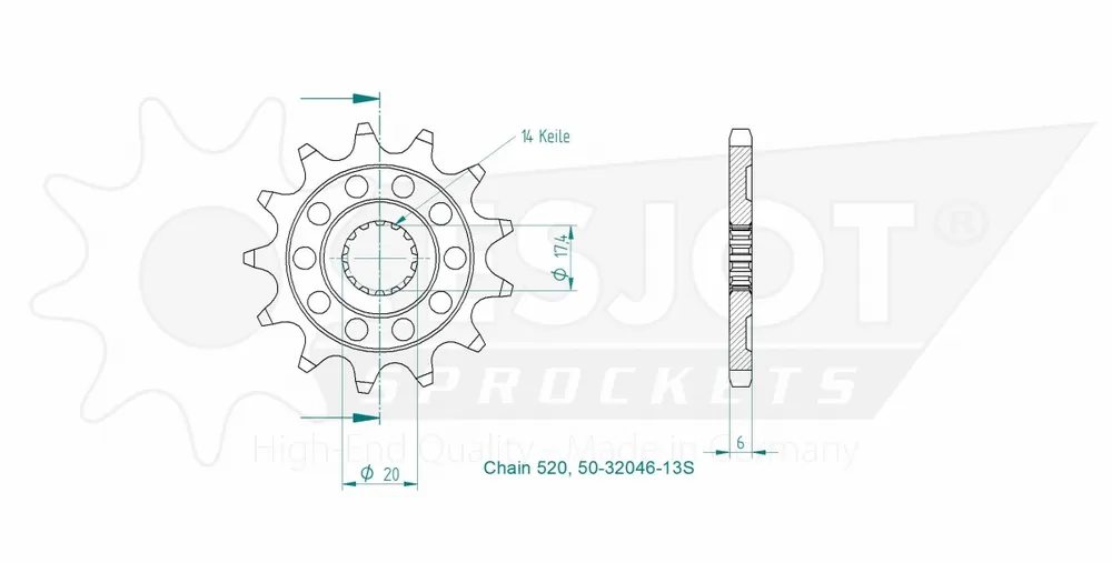 ESJOT – FRONT 13T, LIGHT, 520 – Sprockets – Geschikt voor Yamaha YZ 125 Topkwaliteit