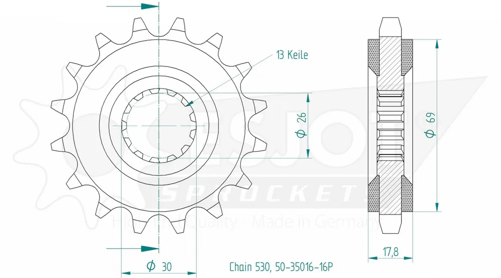 ESJOT – FRONT 16T, 530 – Sprockets – RUBBER CUSHIONED Favoriet