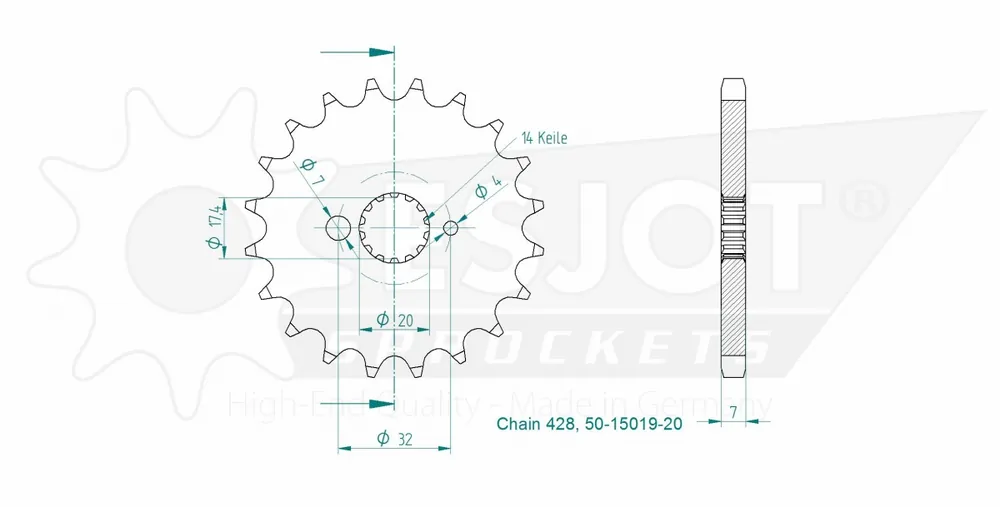 De ESJOT FRONT 20T, 428 is een hoogwaardige sprocket die speciaal ontworpen is voor een uitstekende prestaties van je motor. Deze sprocket is een essentieel onderdeel voor de aandrijving van je voertuig en zorgt voor een efficiënte krachtoverdracht.