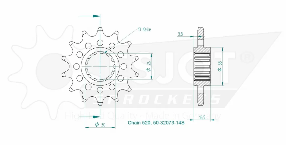 ESJOT – FRONT LIGHT 14T, 520 – Sprockets – Kwaliteitsonderdeel Lage Prijs