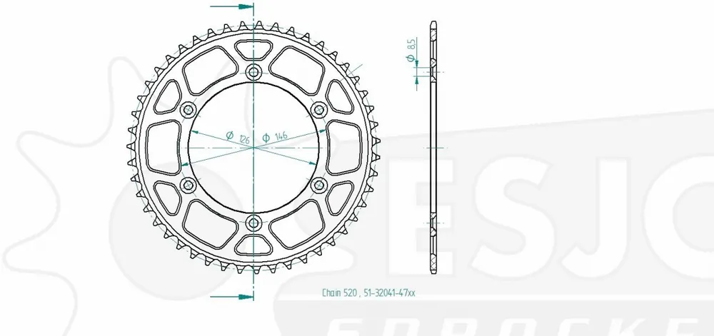 ESJOT – REAR ALU 47T, 520 – Sprockets – Geschikt voor verschillende Suzuki modellen Plaats Bestelling