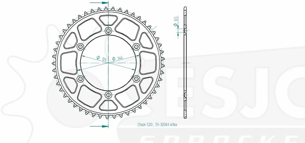 ESJOT – REAR ALU 49T, 520 – Sprockets – Lichtgewicht Aluminium Bestseller
