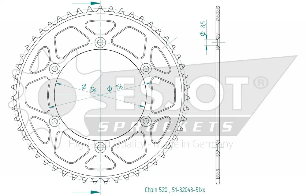 De ESJOT REAR ALU 51T, 520 is compatibel met verschillende merken en modellen, maar controleer altijd je huidige sprocket voor de juiste specificaties en maatvoering.