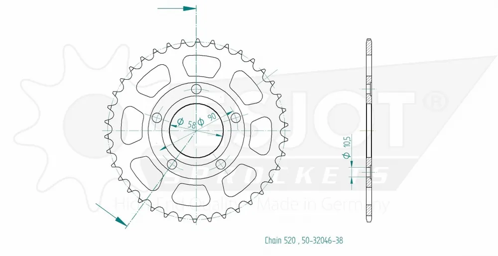 Het is belangrijk om te weten dat dit tandwiel ontworpen is voor een kettingmaat van 520 en 38 tanden heeft. Zorg ervoor dat deze specificaties overeenkomen met jouw huidige sprocket voor een juiste installatie.
