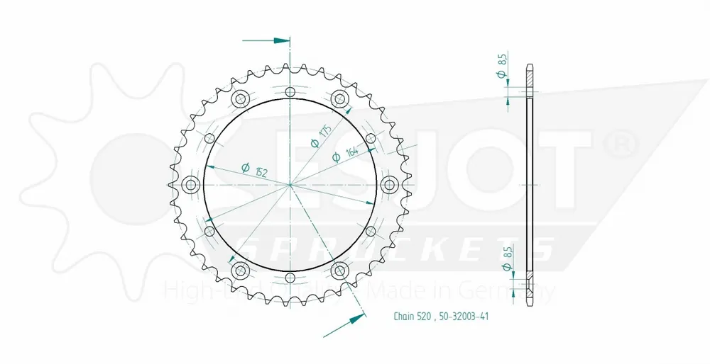 De ESJOT REAR STEEL 41T, 520 biedt uitstekende prestaties en duurzaamheid, waardoor je motor of scooter soepeler rijdt.